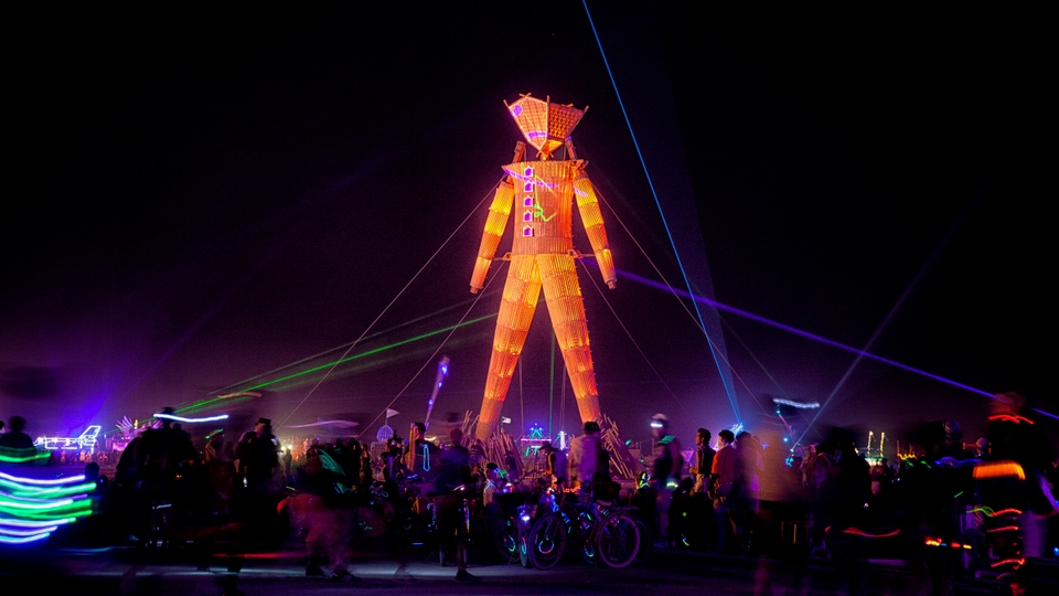 Burning Man a débuté en 1986 sur une plage de San Francisco, sous la forme d'un petit rassemblement d'amis souhaitant découvrir une forme alternative d'art et de culture. Au fil des années, l’événement est devenu un phénomène international qui accueille chaque année plus de 70 000 participants. Burning Man a désormais lieu chaque année dans le désert de Black Rock au Nevada, avec des participants du monde entier.