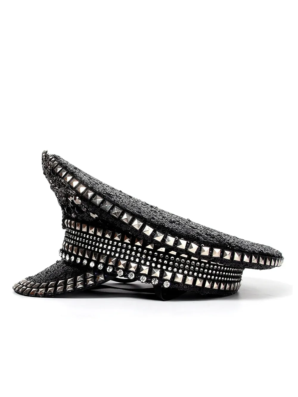 Attira l'attenzione con il Cappello Militare Nero con Paillettes e Strass, un accessorio audace e scintillante pensato per la regalità dei festival. Ricoperto di paillettes luccicanti e impreziosito da strass scintillanti, questo pezzo di grande impatto aggiunge glamour istantaneo a qualsiasi look da festival. Che tu stia dominando la pista da ballo o guidando la folla al Burning Man, questo cappello ti assicura di distinguerti con stile.